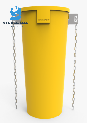 Conduta para descarga de entulho com elevada resistência, é de fácil manuseio, contendo um sistema de engate rápido e incluindo correntes e mosquetões para garantir assim uma instalação segura. Alta qualidade, elevada resistência ao impacto e às intempéries, devido ao seu processo de fabrico por rotomoldagem.
