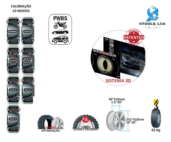 Diâmetro Admissível Roda 256 - 610 mm (10”-24”)